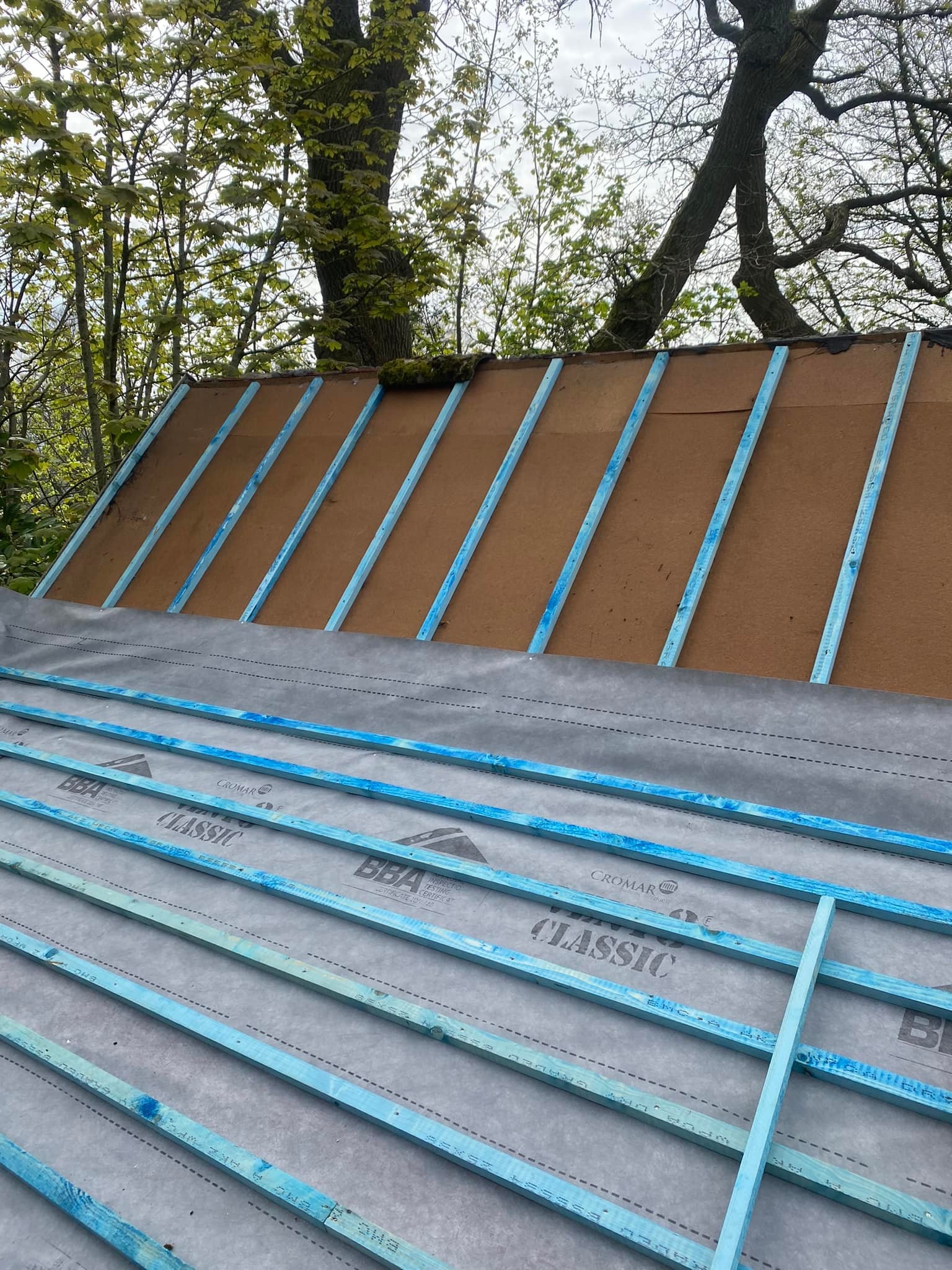 " My husband have been impressed with Jake from our first contact. We particularly liked his punctuality and attention to detail when he visited to quote for the work. He did an excellent job replacing the felt on our porch roof, also replacing some of the wood that had rotted and adding lead flashing for extra protection. We have since asked Jake to assess our house roof and would have no hesitation using him again. "